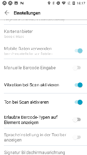 - Barcodereader-Typ (Wird von der App normalerweise automatisch gesetzt, entscheidet darüber, welche Scan-Libary verwendet wird.)
