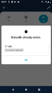 - Barcode bereits gescannt, muss extra bestätig werden, damit weiter gescannt werden kann