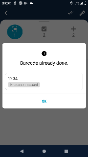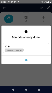 - Barcode bereits erledigt, muss extra bestätig werden, damit weiter gescannt werden kann