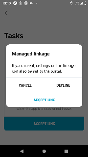 Wird die Art der Verknüpfung erweitert (Standard → Verwaltete Verknüpfung → Verwaltete App), dann wird eine Upgrade-Anfrage für eine vorhandene Verknüpfung an die App geschickt, diese muss bestätigt werden.
