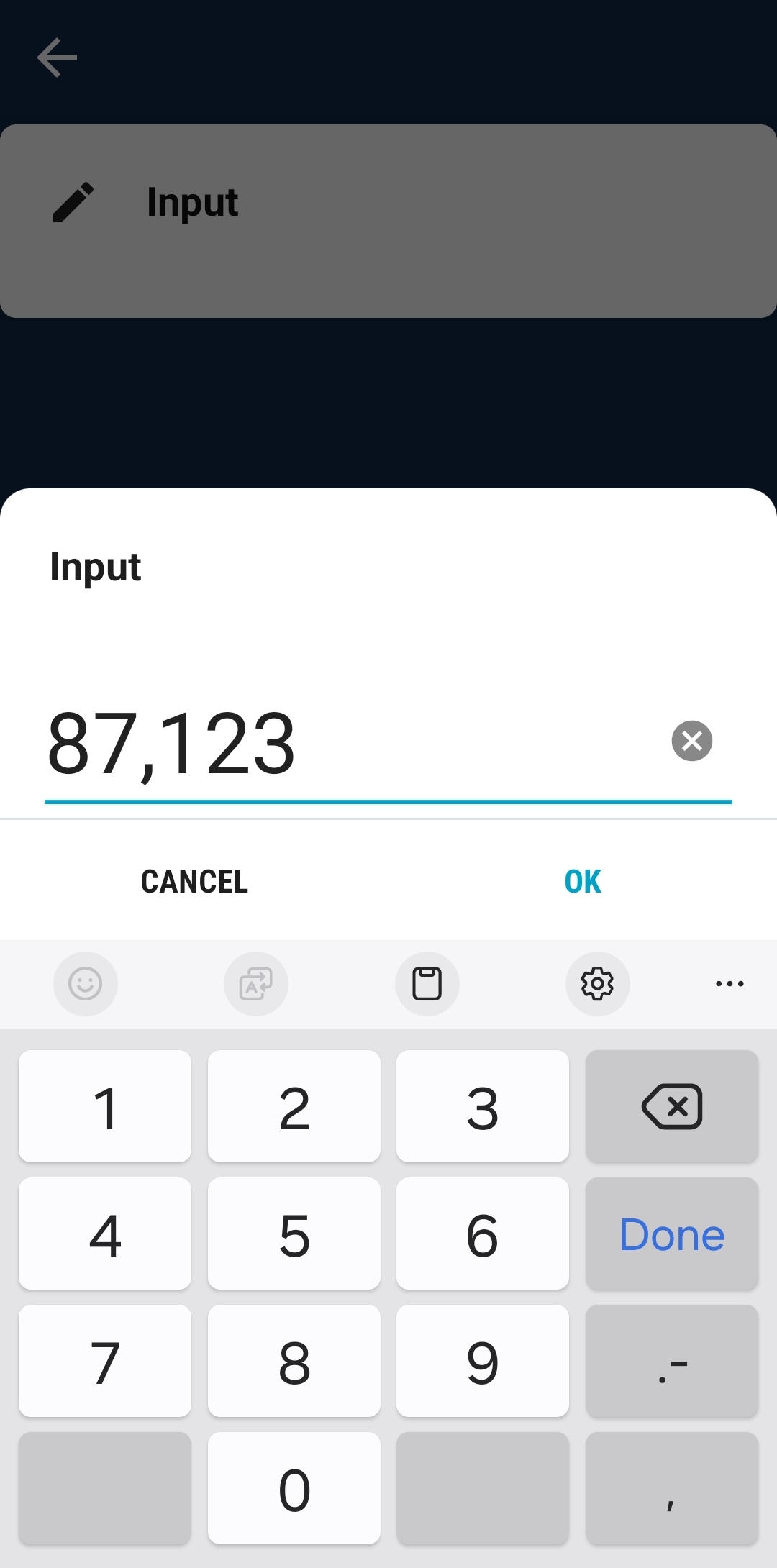 Im Dialog des Eingabe-Elementes werden die drei Nachkommastellen dann angezeigt.
