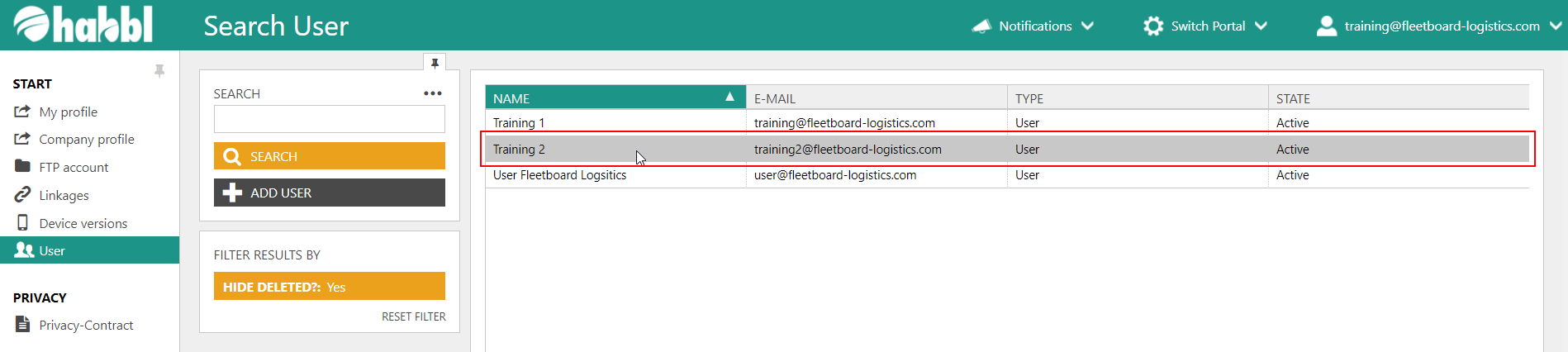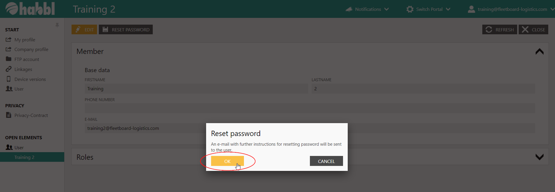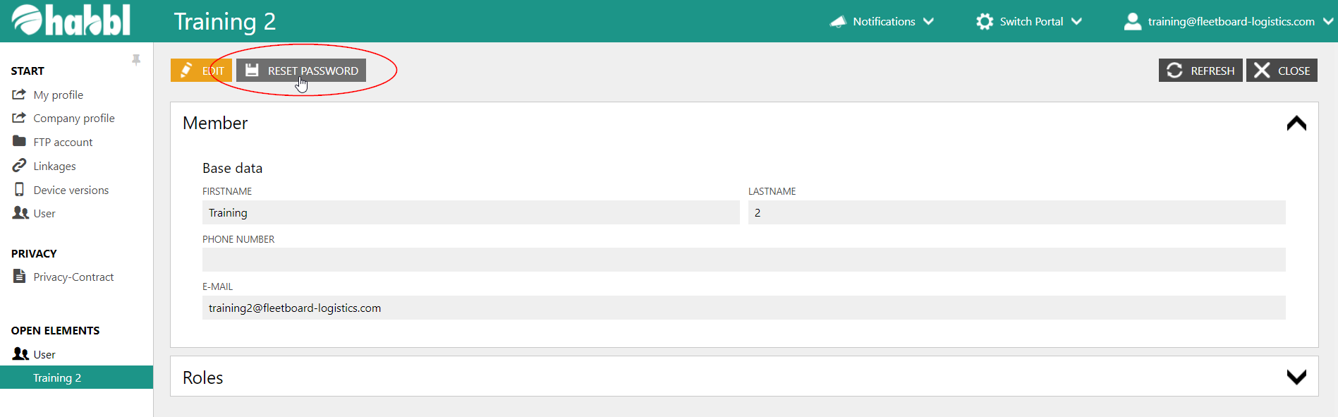 - Select the user from the user list in the user administration.