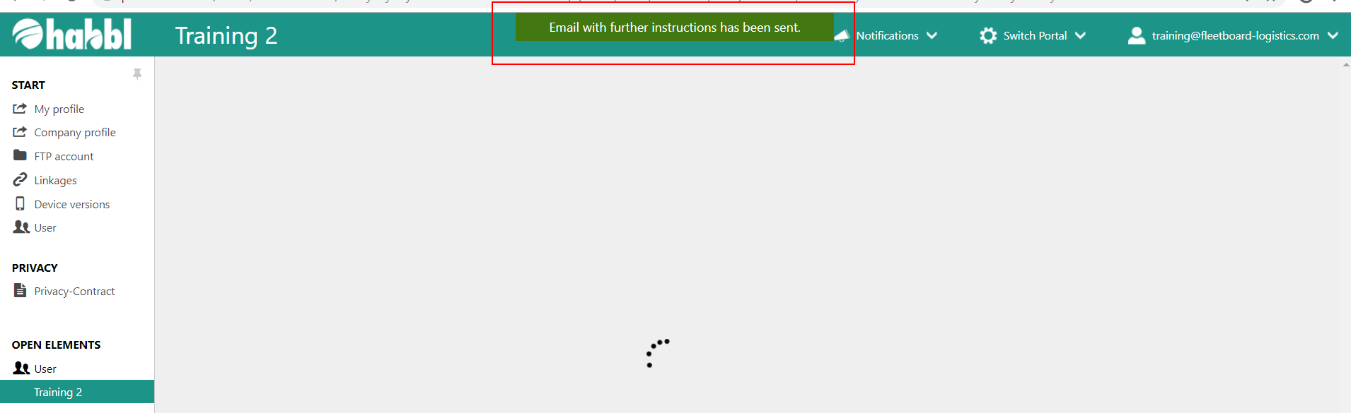 - Your action was successful if you get the notification "E-Mail with further instructions has been sent."