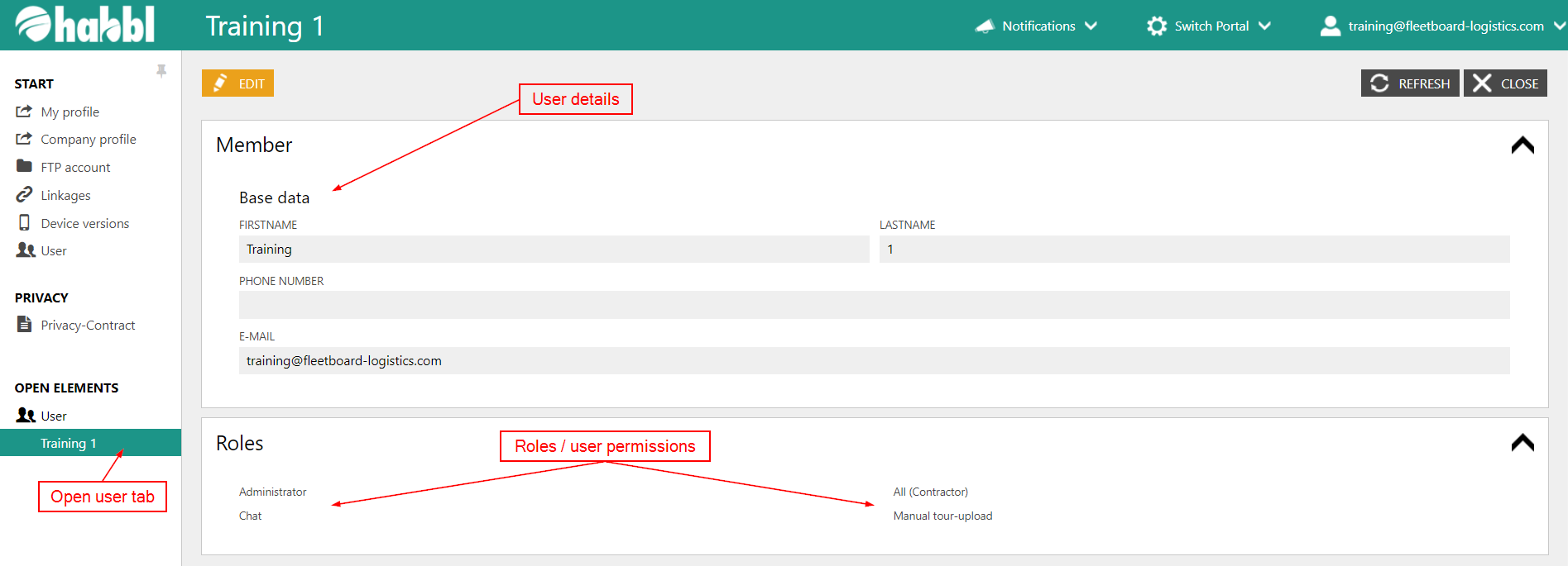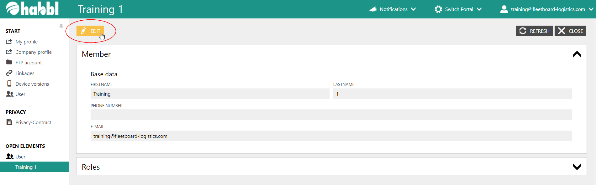 - By clicking on the "EDIT" button you can edit user details an roles. We will have a deeper look at editing roles in the following articles.