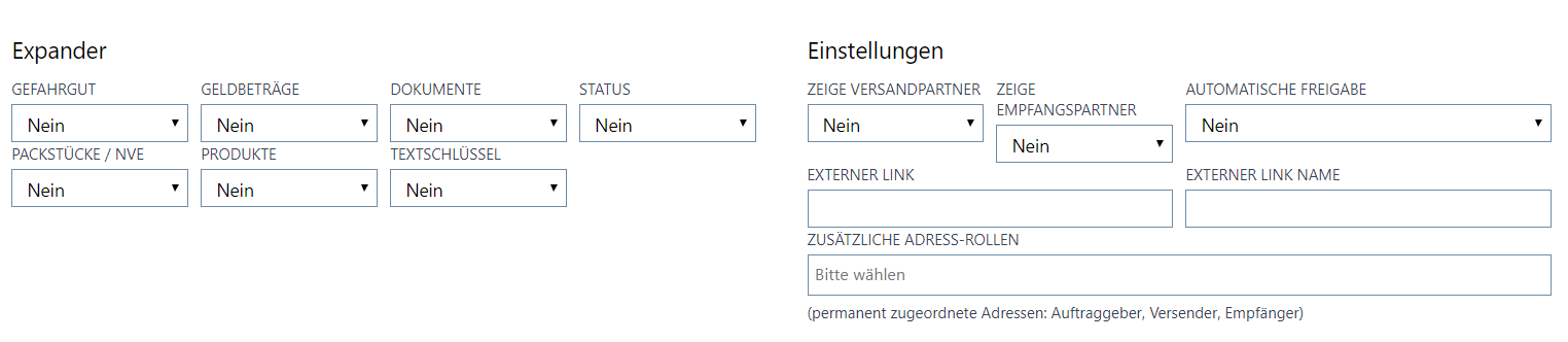 Sie können nun die Auftragsarten auf Ihre Bedürfnisse anpasst. Legen Sie fest, welche Expander und Adressen für die unterschiedlichen Auftragstypen angezeigt werden.