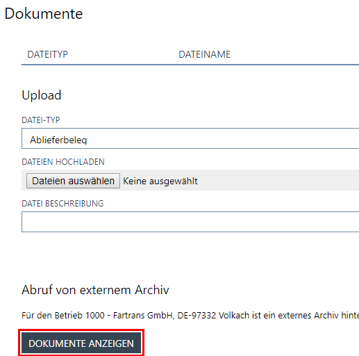5. In einer Sendung, die einen solchen Link hinterlegt hat, kann man unter Dokumente auf dem Button "Dokumente anzeigen" klicken und wird zur am Link gesendeten URL angezeigt.