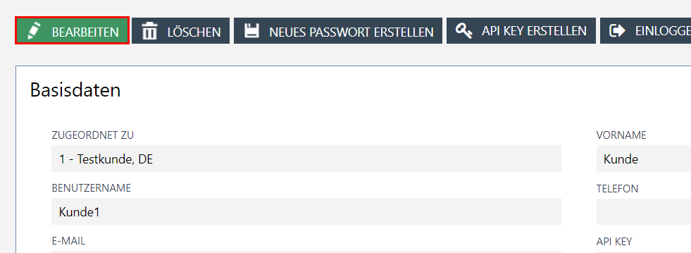 Zu einem Benutzer stehen unterschiedliche Berechtigungen zur Verfügung. Diese sind abhängig davon, ob ein Benutzer zu einem Kunden oder Partner angelegt wird.
