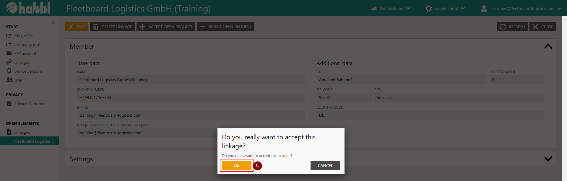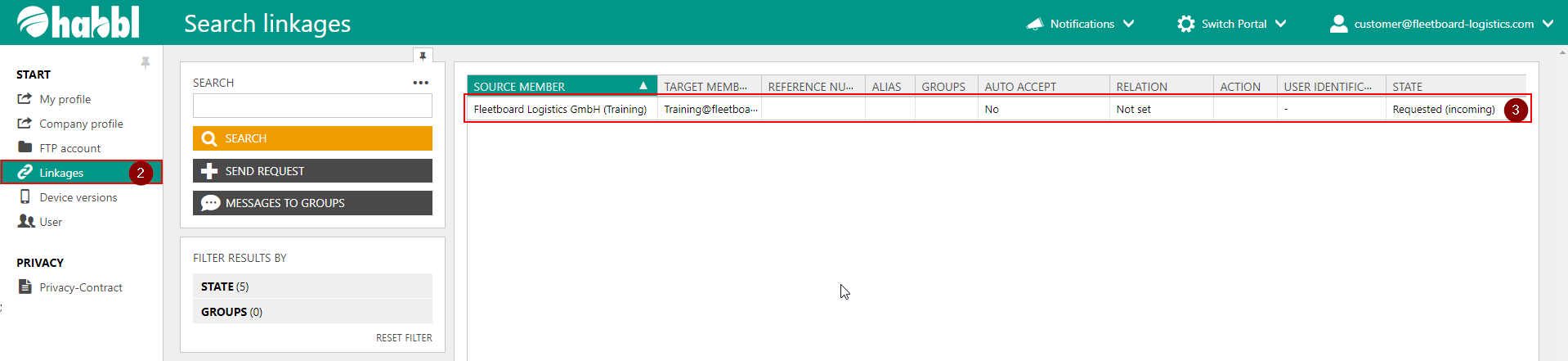 3. In the middle area you can see all linkages and enquiries. Click on the incoming request.