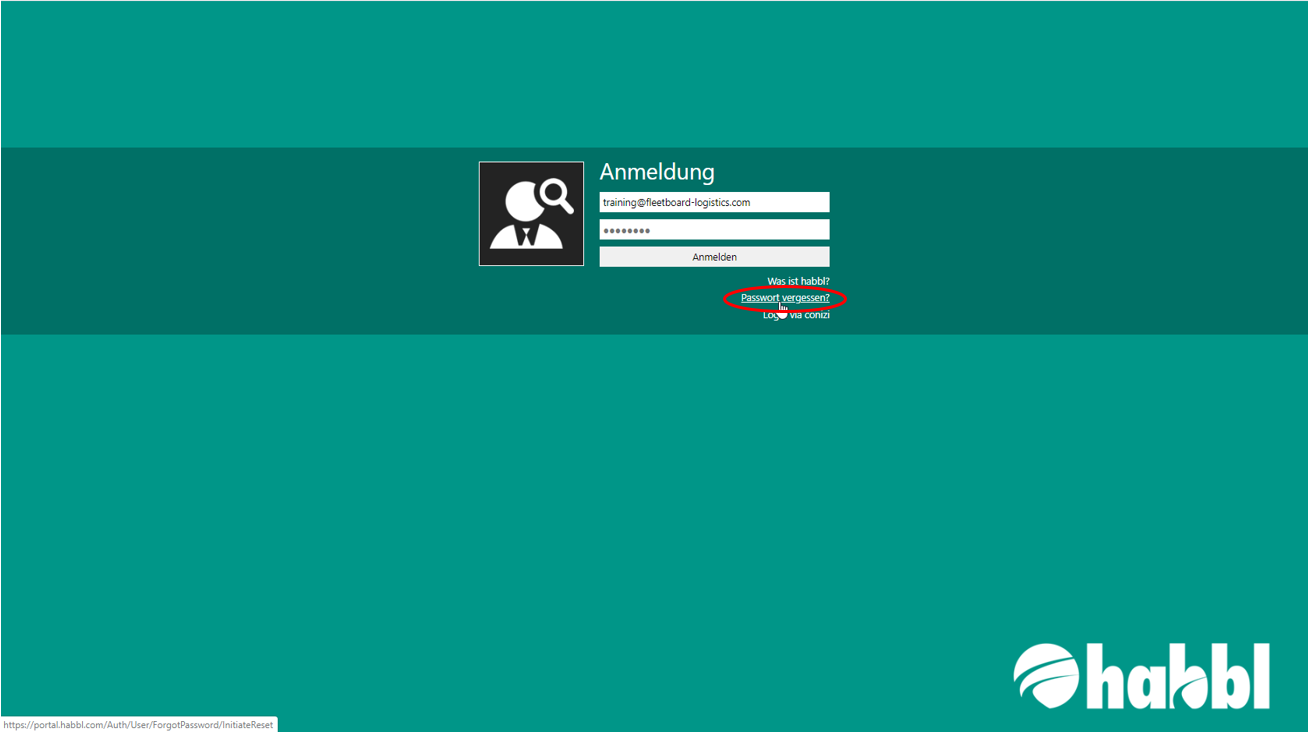 Klicken Sie in der Anmeldemaske auf Passwort vergessen?