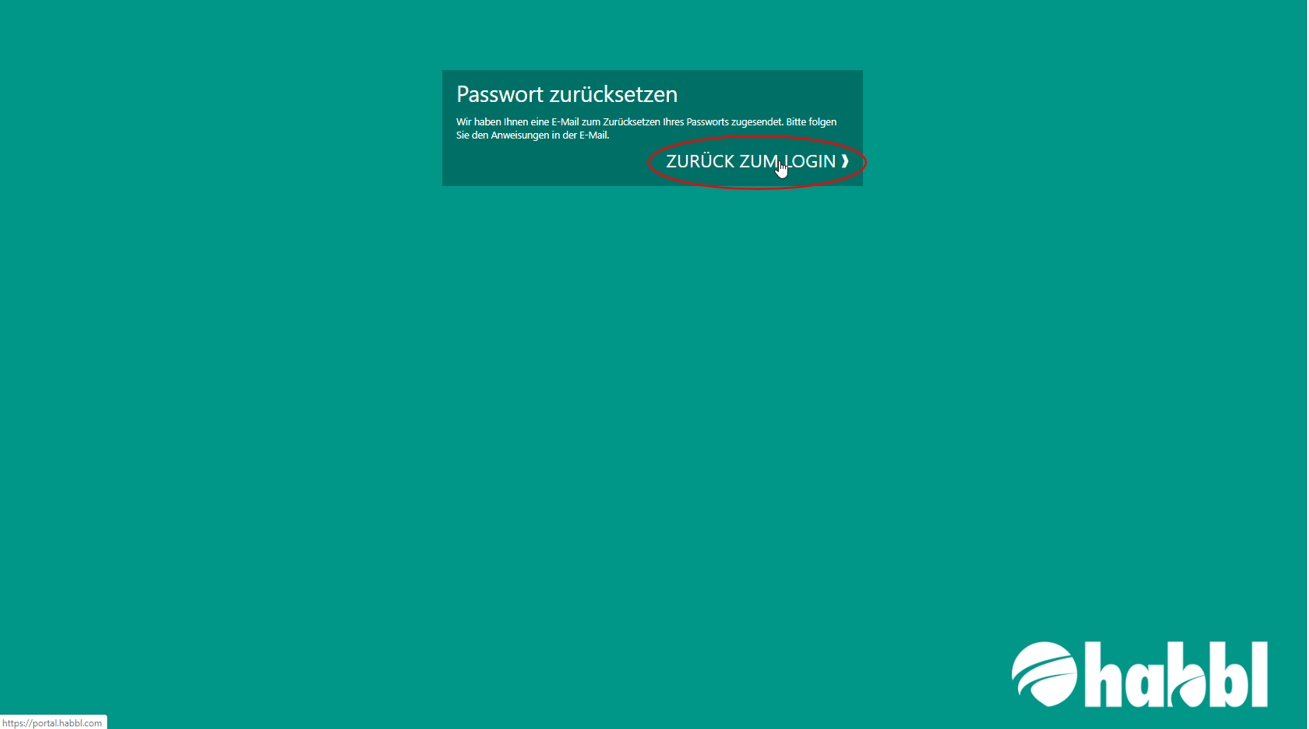 Sie erhalten die Rückmeldung "Wir haben Ihnen eine E-Mail gesendet, um Ihr Passwort zurückzusetzen. Folgen Sie die Anweisungen in der E-Mail." und können zur Startseite zurückkehren.